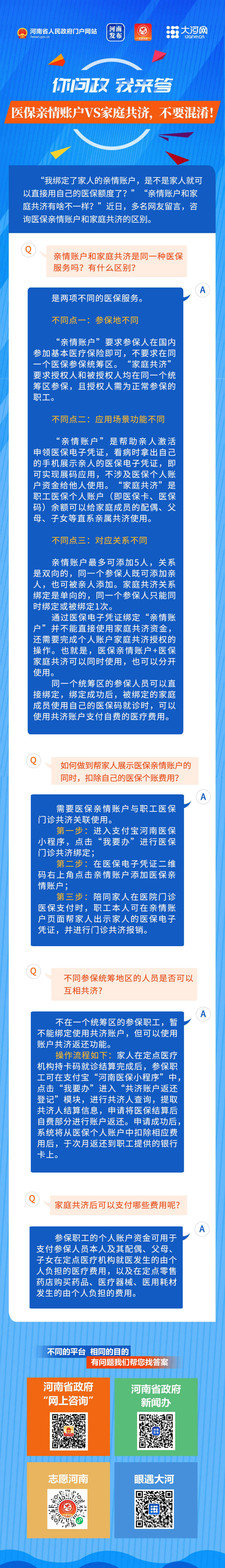 年夜河網訊 “我綁定了家人的親情賬戶,是不是家人就可以直接用我的醫保額度了?”“家庭共濟和親情賬戶有啥紛歧樣?”近日,包養多名網友留言徵詢親情賬戶和家庭共濟的差別。